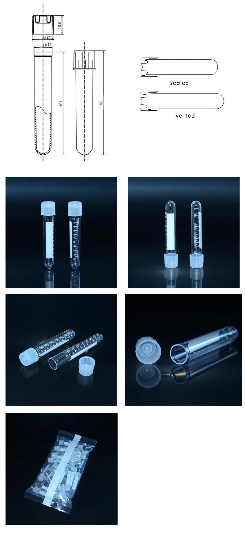 - 17 x 100 mm (12 ml) Polystyrol-Röhrchen (PS) halten einer Zentrifugation bis zu 1400 x g und einer Temperatur von 80 °C stand